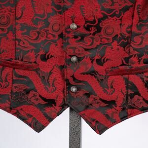 WAHMAKER Men's Western Frontier Vest Red Black Dragon Tapestry Size XL USA Made