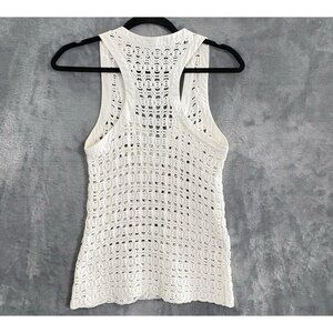 WAI MING Women Open Knit Crochet Tank Top Sz L White Racerback Spring 17-12
