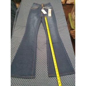 Enhance your wardrobe with these stylish jeans from Cutie Pie. The dark blue denim fabric wash of these bellbottoms gives them a chic and sophisticated look that is perfect for any occasion. The waist size of these jeans is 30in and the size is 7-4 CTP1206 SZ7.