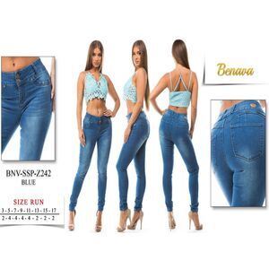 Elevate your wardrobe with these stylish blue skinny jeans from BENAVA. Featuring a flattering mid-rise fit and a waist size of 32 inches, these jeans are perfect for women who want comfort and style. The fabric type is denim, and the material includes a blend of polyester, spandex, and cotton, allowing for a stretchy fit that hugs your curves in all the right places.