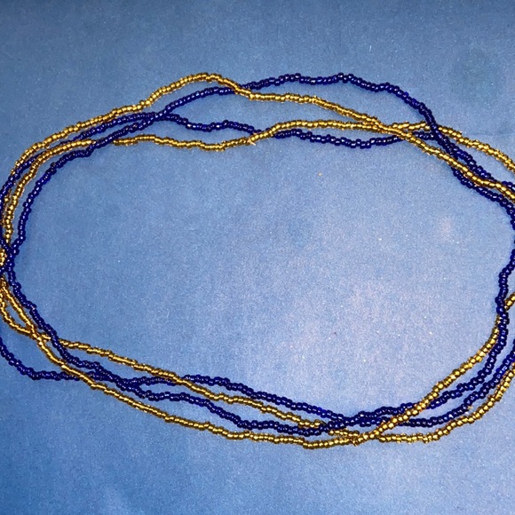 Handmade Elastic waist beads. one gold, one blue. 45in!!!but you can always take some beads off and adjust it if it’s too big.