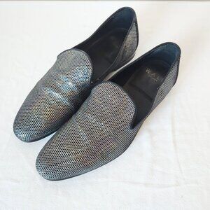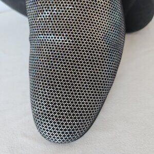 WALK LONDON Leather Silver Glitter Casual Party Disco Loafers Slip-On Men's UK8 US9
