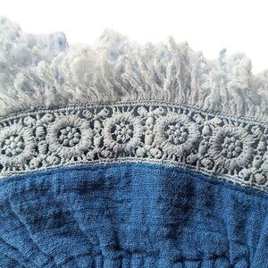 WALKER & WADE Kauai Blue Cotton Off Shoulder Fringe Trim Mini Dress Size XS