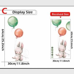 WALL DECALS Bunnies with Balloons, Removable Wall Art Sticker, Baby & Children