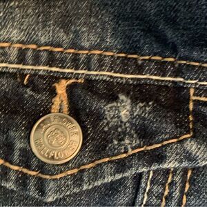 Pre Loved Gently Worn, Excellent Condition, No Stains, Markes, Holes or Flaws. See last two photos missing string on hood, destressed pocket.