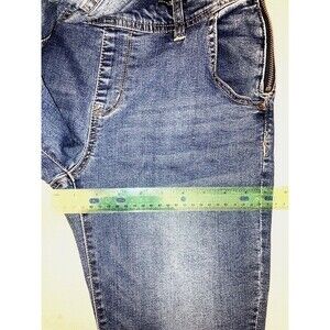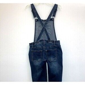 WALLFLOWER THE TOMBOY - BLUE JEANS COTTON STRETCH DENIM STRETCH BIB OVERALLS - Skinny Tapered Legs, Adjustable Shoulder Straps; Rivets, Buttons, Buckles, Pockets and Side Zip Closure. Size M - Juniors - Waist-33" / Inseam-29". Thigh Measurement & Leg Opening shown in the photos. Shoulder Straps are adjustable. New without Tags & Excellent.