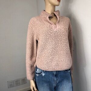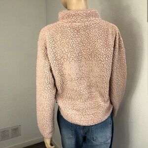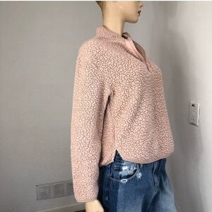 This Wallflower Teddy Sherpa Pullover Sweater is a cozy and stylish option for women in size small. The sweater features a solid, tight-knit pattern with long sleeves and a high neckline, perfect for keeping warm during the winter and fall seasons. Made of polyester fleece, this pullover has a relaxed fit and is designed with a boxy, oversized silhouette. It also includes 1/4 snap buttons, pockets, and a thermal quality, making it a practical and fashionable choice for travel or casual wear.