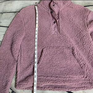 WALLFLOWER Sherpa pullover. Lilac in color. Keep in mind that Sherpa material tends to matte up a bit. In good condition. Three snaps. Size M.