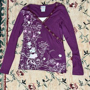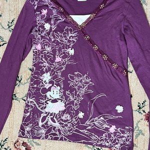 WALT DISNEY WORLD Minnie Mouse Purple Floral Blouse