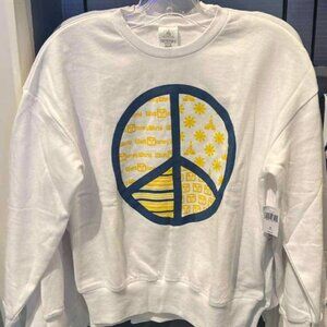 WALT DISNEY WORLD PARKS PEACE SIGN WHITE SWEATSHIRT PULLOVER TOP NWT SIZE SMALL