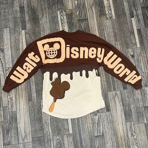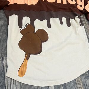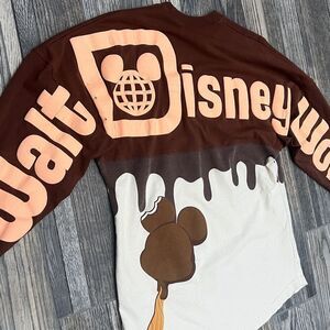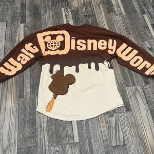 🔥🔥 WALT DISNEY WORLD SPIRIT JERSEY LS Brown/Cream Tee Women’s XS (fits L) -GUC