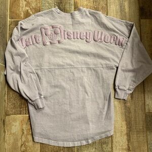WALT DISNEY WORLD SPIRIT JERSEY Womens Lilac Shirt Shimmer Puff Print Spellout M