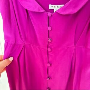 Details: WALTER 100% Silk Button Up Tank Dress - Size: 0 - Color: Fuchsia pink - Material: 100% silk - Fabric buttons - Mini length
