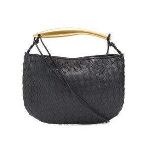 top carry handle, adjustable shoulder strap, woven design, gold tone hardware, detachable wristlet pouch