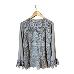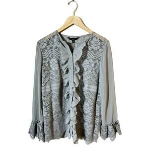WALTER BAKER Blouse Ruby Gray Lace Button Down Top Long Sleeve Ruffles Medium