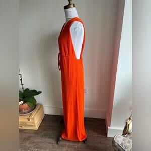 WALTER BAKER CARMEN PLUNGE NECKLINE RIBBED MAXI DRESS ORANGE SIZE XL