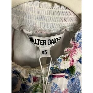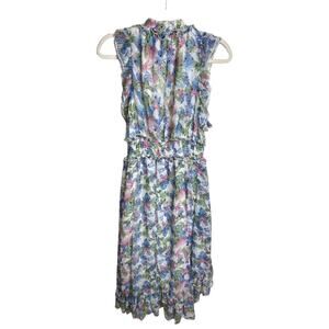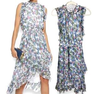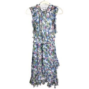 WALTER BAKER DRESS XS FLORAL TIERED RUFFLE HIGH LOW MIDI WHITE BLUE GREEN