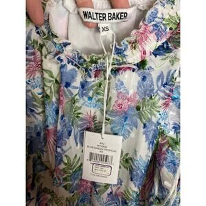 NWT Walter Baker Blue Green Tropical Tiered Ruffle High Low Midi Dress