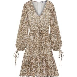 WALTER BAKER Faber Tie-Detailed Leopard-Print Metallic Georgette Dress Sz 2