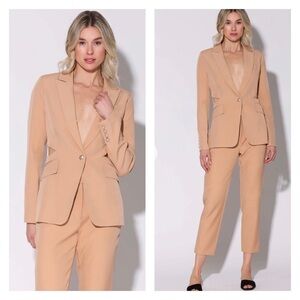 The Felicia Blazer brings sexy back with cut out details and low single button closure. Pair back to the Fallon Pant for the ultimate suit chic look