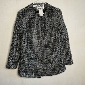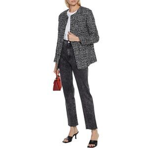 WALTER BAKER Kennedy Metallic Bouclé-Tweed Jacket 4 Buttons Blazer BlackSilver M