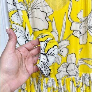 WALTER BAKER Lilith Relaxed Long Sleeve Mini Dress in Yellow Floral Print Size L