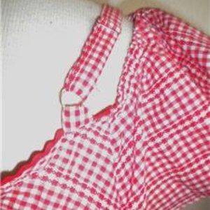 WALTER BAKER MS SIZES RED AND WHITE GINGHAM COLD SHOULDER CROP BLOUSE