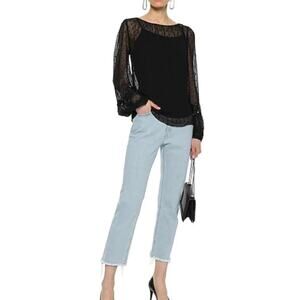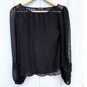 WALTER BAKER black swiss dot semi sheer billow sleeve embellished Candice top