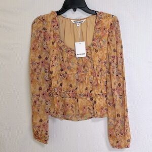 New With Tag Walter Baker Myka Floral Tiered Crinkle Chiffon Top - Size Medium
