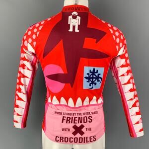 WALTER VAN BEIRENDONCK FW14 Size S Red Pink Graphic Nylon Jersey Bike Top