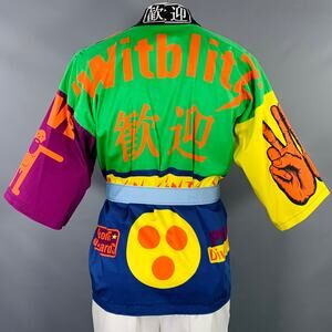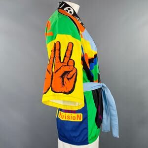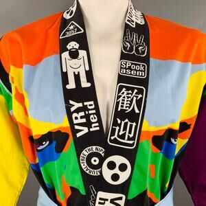 WALTER VAN BEIRENDONCK SS20 L Multi Color Color Block Cotton Kimono Cardigan