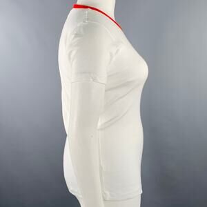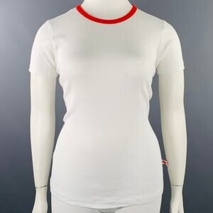 WALTER VAN BERIRENDONCK t-shirt in a white cotton knit featuring a ringer style, rib knit design, and red crew neck trim. Made in Belgium.