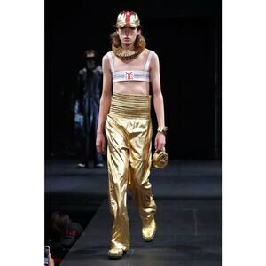 WALTER VAN BEIRENDONCK Spring 2023 Gold Leather Ruff Collar
