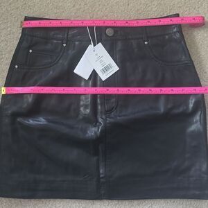 - Alicia Leather Mini Skirt in Black with Belt Loops and Classic Five-Pocket Styling with Faux Front Pockets