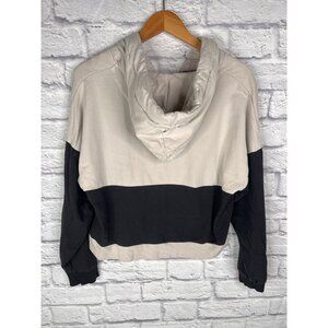 WANAKOME Women's Tan Black Hooded Full Zip Crop Sweatshirt Medium