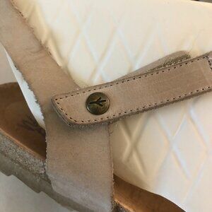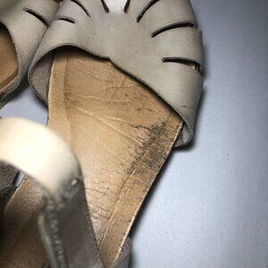 ♡ Women's size US9, EU41. Neutral. Made in Spain, Distressing, Buckle at ankle strap, Round closed toe sandal, Pre-loved item looks in good condition to me, please be aware of some natural wear, stains and distressing. See descriptive photos for approximate measurements, condition, No care/material tags.