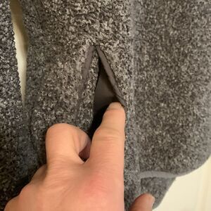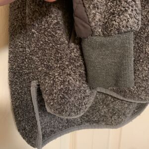 Good condition, no stains snags or tears, polyester, front pockets, button neck