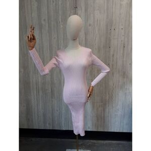 WANTROY Dress Long Sleeve V Neck Knit Bodycon Stretchable Sweater Dresses Clothes for Photoshoot Light Pink LARGE