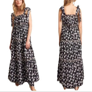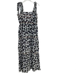 WARM Dress Big Love Floral Tiered Tie Shoulder Maxi Dress Size S Black