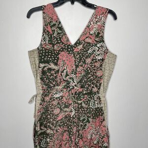 WARM Jumpsuit Womens Medium Floral V-Neck Sleeveless Green Pink Wide Leg Pockets