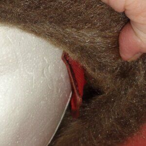 UNION AMERICAN MADE BROWN SHADES OF FAUX FUR WITH AN INSULATING WARM BURGUNDY QUILTED LINING,EAR COVERS AND AROUND THE BACK OF THE HEAD INSIDE COVER.[HAL-BG]