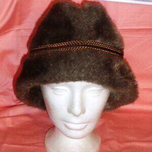 WARM,COMFY BROWN FAUX FUR WINTER HAT WITH EAR COVERS INSIDE-EXCELLENT-AMERICAN