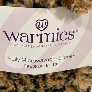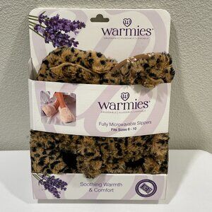 WARMIES Slippers (NWT) Microwaveable Leopard Print Faux Fur Lavender/Flax - 6-10