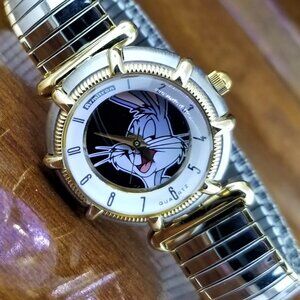 New without Tags ~ See Photos ~ 1995 Armitron Warner Brothers BUGS BUNNY Watch ~ 28mm Wide Case ~ Gold & Silver Tone Stretch Bracelet ~ New Battery Installed Runs Great ~ All Sales Final on Watches ~ Shipped USPS Insured Mail.
