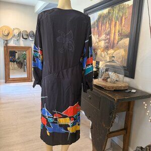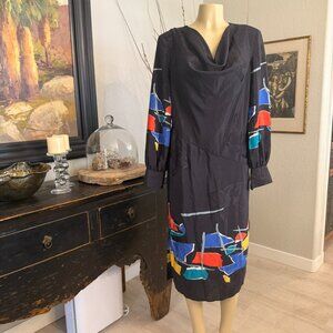 WARREN Z Color Block SILK DRESS Long Sleeve below the knee in length