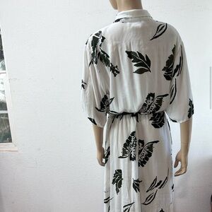 This stunning Warren Z maxi dress is the perfect addition to your wardrobe. The dress features a beautiful floral pattern and a collared neckline with button closure. The short sleeves and long dress length make it perfect for any occasion, whether it's a casual day out or a business meeting. The dress is made of high-quality rayon material and comes in a size 14. The white color and vintage style add a touch of elegance to the dress. It's a must-have for any fashion-forward woman.