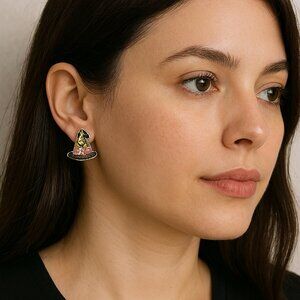 🔴WAS $16 Halloween Witch Hat Stud Earrings Enamel 1 In High Colorful New