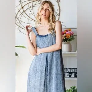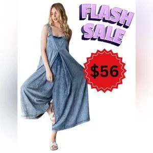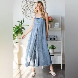 WASHED PLEATED DETAIL WIDE LEG ROMPER