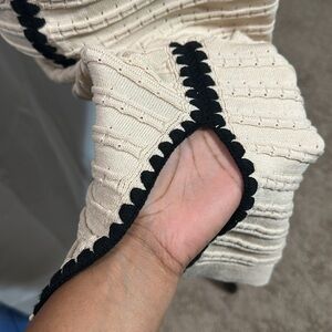 WATASHI Tan/Black Tank Knit Dress Round Neck Side Split Scalloped Edge Size M NWT