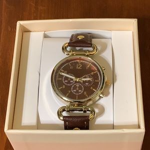 Do not know name brand. Beautiful watch to accessorize with any outfit